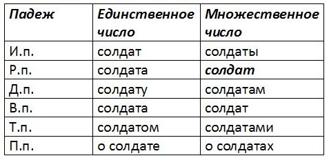 Рота (кого?) солдат - мн.ч., Р.п.