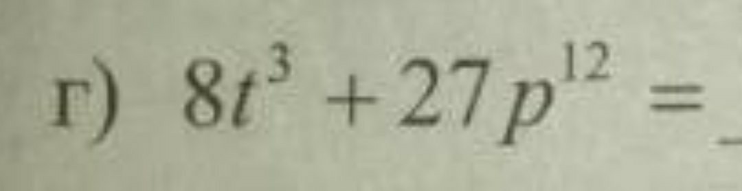 8t³+27p¹²=(2t+3p⁴)(4t²-6tp⁴+9p^8)