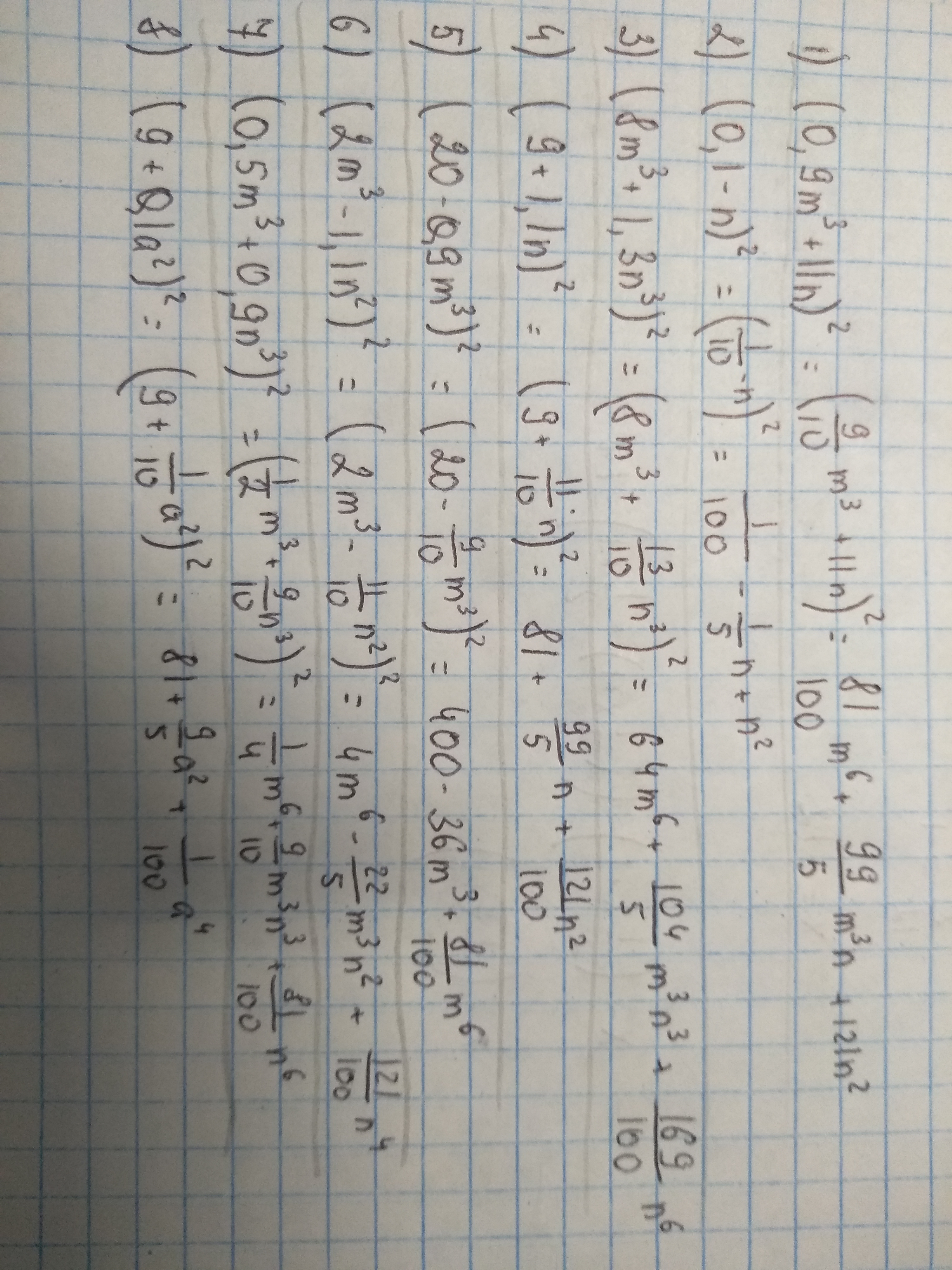 7.) (0,5m^3+0,9n^3)^2=0.25m^6+0.9m³n³+0.81n^6