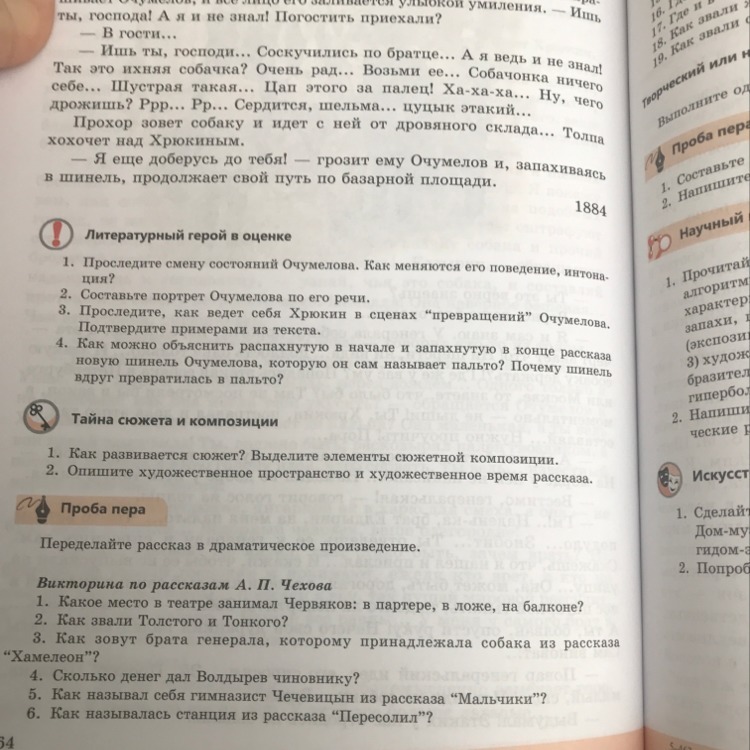 7Какова должность Червякова ? 8. Какую должность занимает Кувалдин из рассказа " Дипломат " ? 9. В какое время происходит действие рассказа " Мальчики " ? 10. Как зовут Пискарева ? Каков ero чин ? 11. Как зовут генерала , котороо обрызгал Червяков ? 12 Кем по профессии является герой рассказа " Пересолил " ? 13. Какой породы собачка из рассказа " Хамелеон " ? 14. что нужно было Волдыреву в присутственном месте ? 15. В каком произведении употреблено слово " турнюр " ? 16. Где задержали мальчиков , которые убежали в Америку ? 17. Где и в чем умер Червяков ? 18. Как звали жену и сына Тонкого ? 19. Как звали собаку из рассказа " Мальчики " ?ПОМОГИТЕ ПОЖАЛУЙСТА!!!!!Задания по произведению Чехова Хамелеон