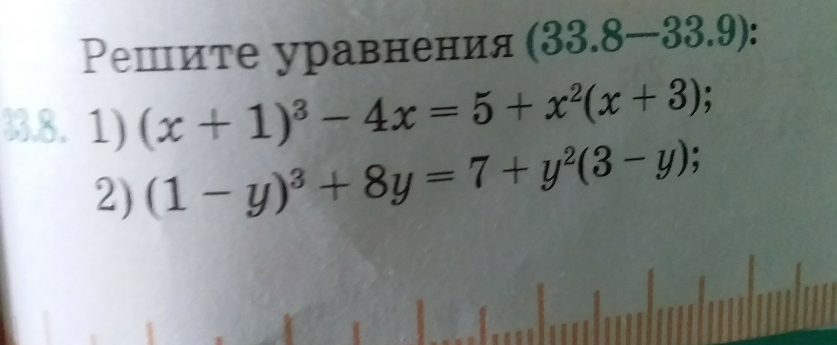 2) 1 - 3y + 3y^2 - y^3 + 8y = 7 + 3y^2 - y^3