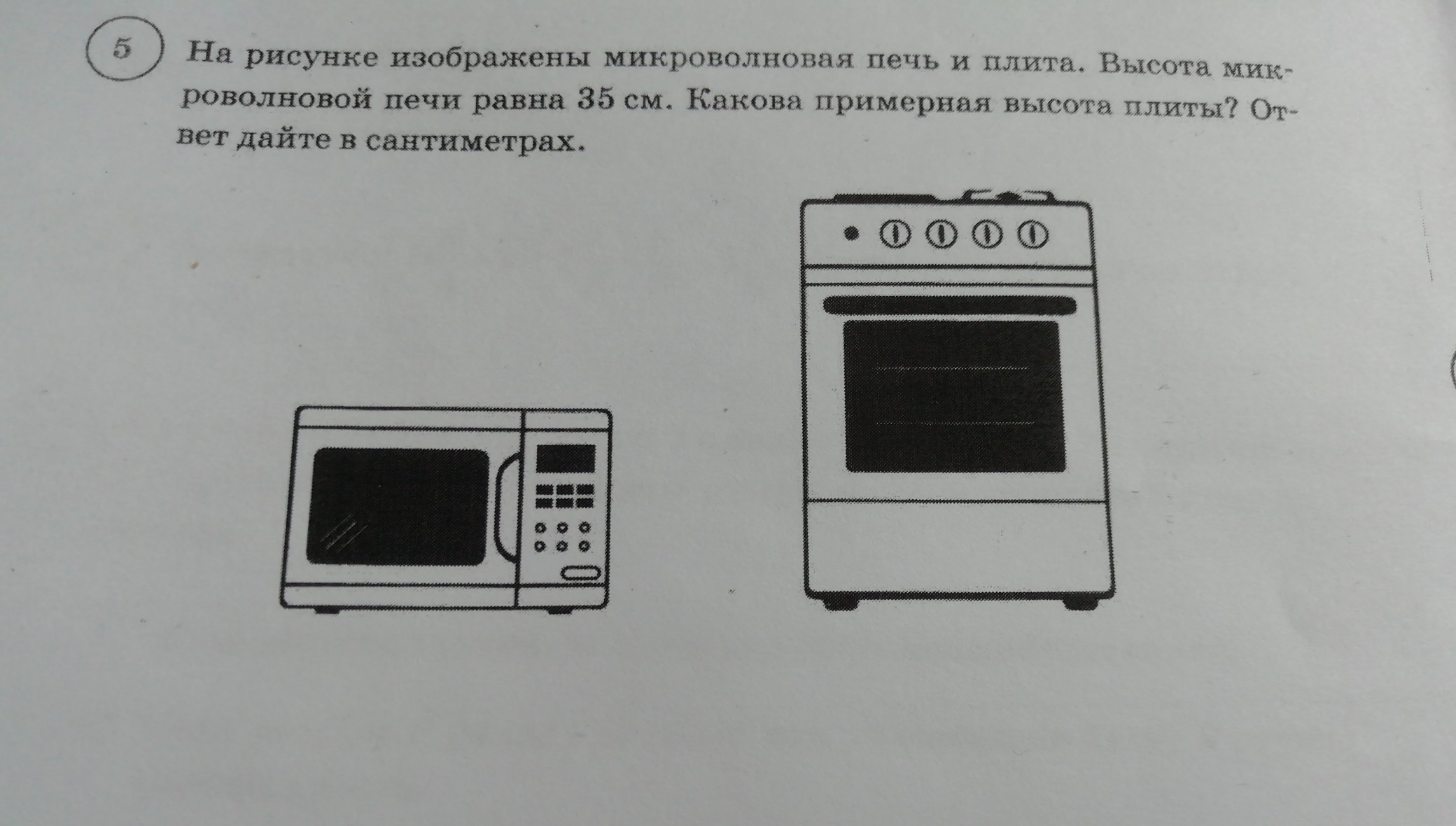На рисунке изображена микроволновая печь и плита высота микроволновой печи равна 35 см Какова примерно высота плиты