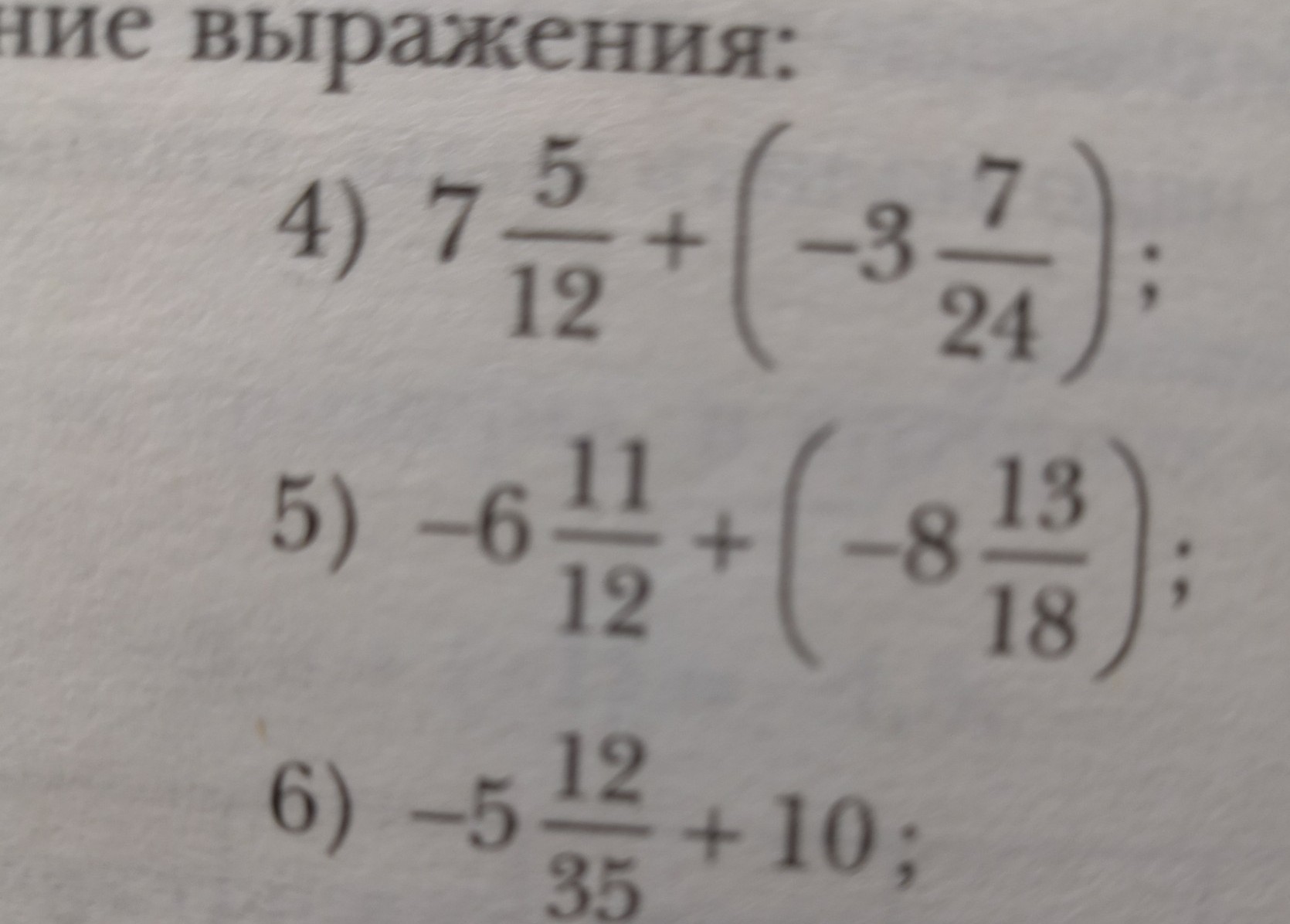 6) -5 12/35 + 10=-5 12/35 + 10 35/35= 4 23/35