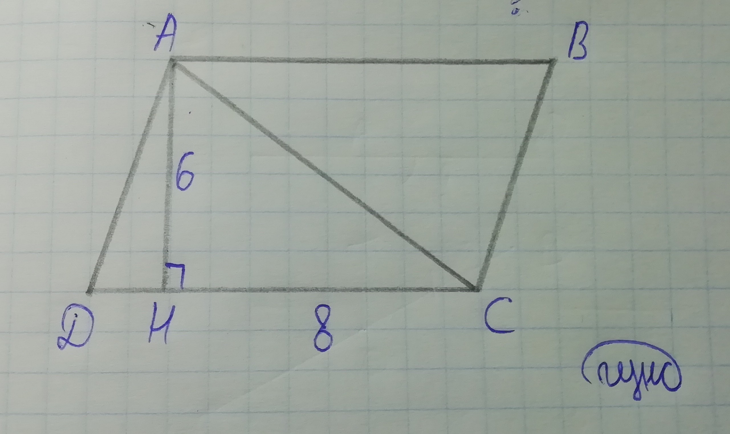 Рассмотрим ΔHAC - прямоугольный: AH = 6, HC = 8, AC - ?