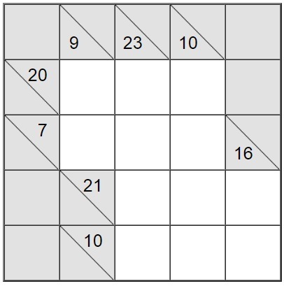 Разгадайте какуро: запишите в белые клетки числа от 1 до 9 включительно, правое верхнее значение означает сумму чисел в строке, а значение снизу слева равно сумме чисел в столбце, одинаковые числа в одной строке и в одном столбце записывать нельзя. Какое число будет записано в правой нижней клетке?