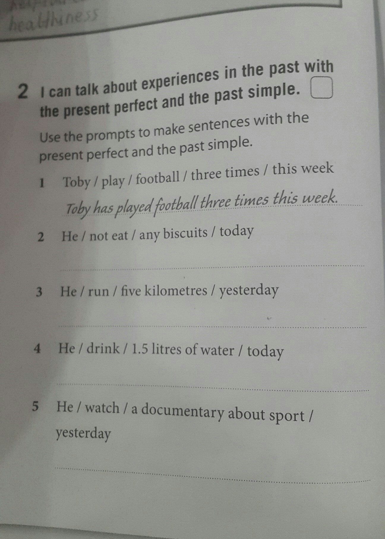 5)He watched a documentary about sport yesterday.
