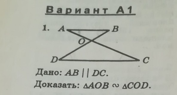 ∠BAO = ∠DCO как накрест лежащие при AB║DC и секущей AC.