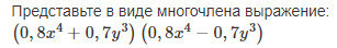 Представьте в виде многочлена выражение: ( 0 , 8 x 4 + 0 , 7 y 3 ) ( 0 , 8 x 4 − 0 , 7 y 3 )