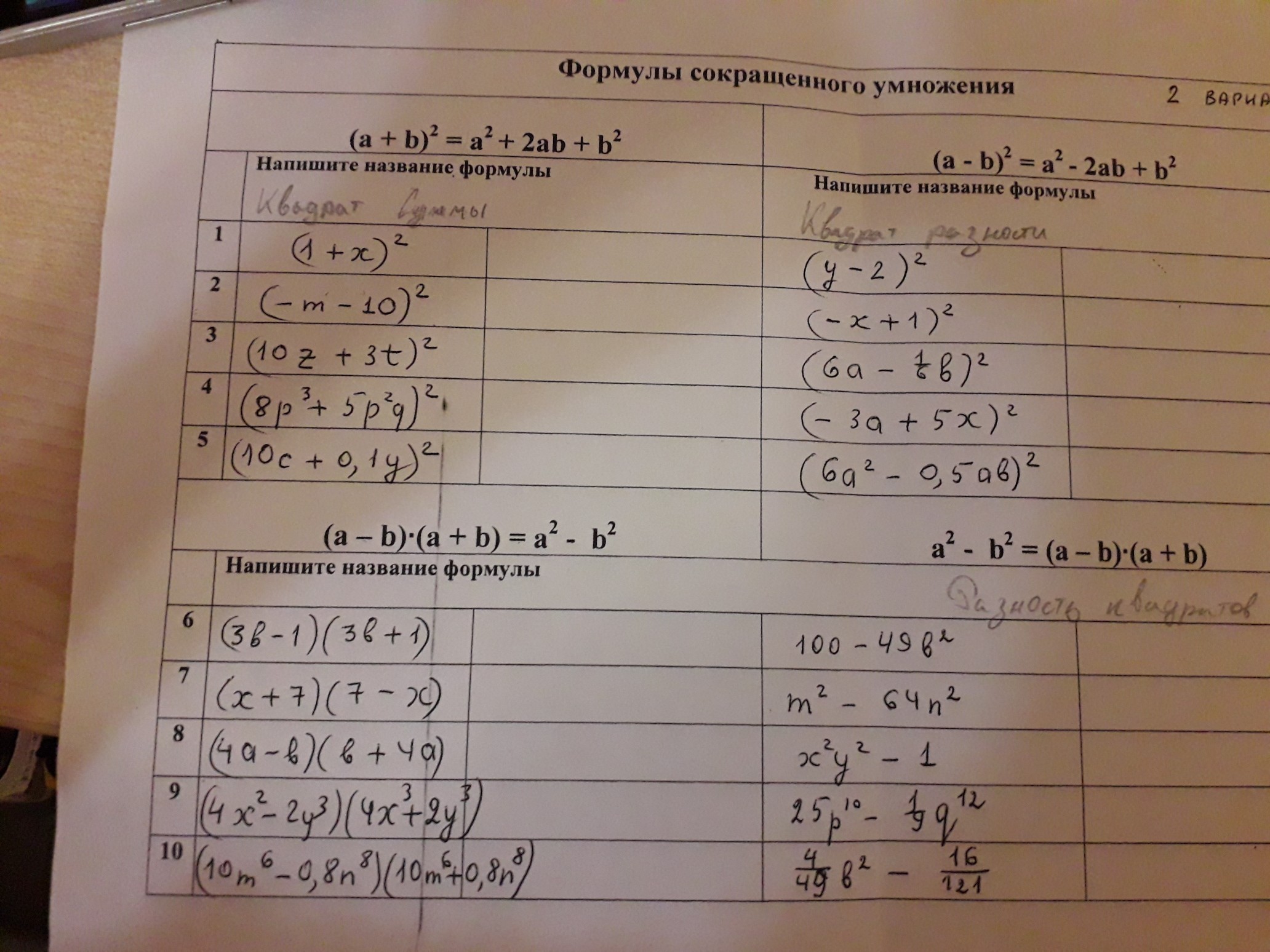 (6a²-0.5aв)² = 36а⁴-6а³в+0,25а²в²