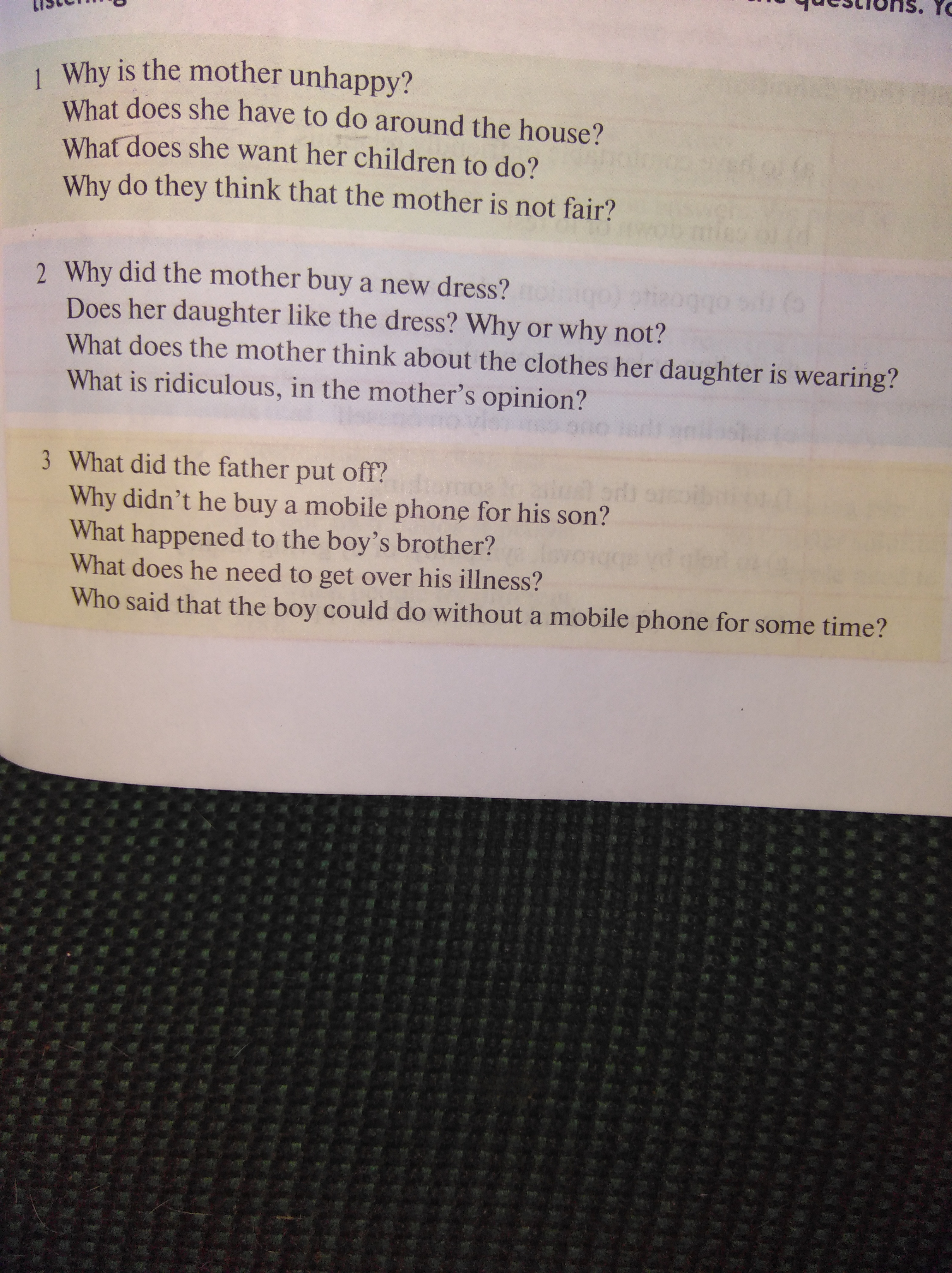 1. <I asked> why was the mother unhappy.