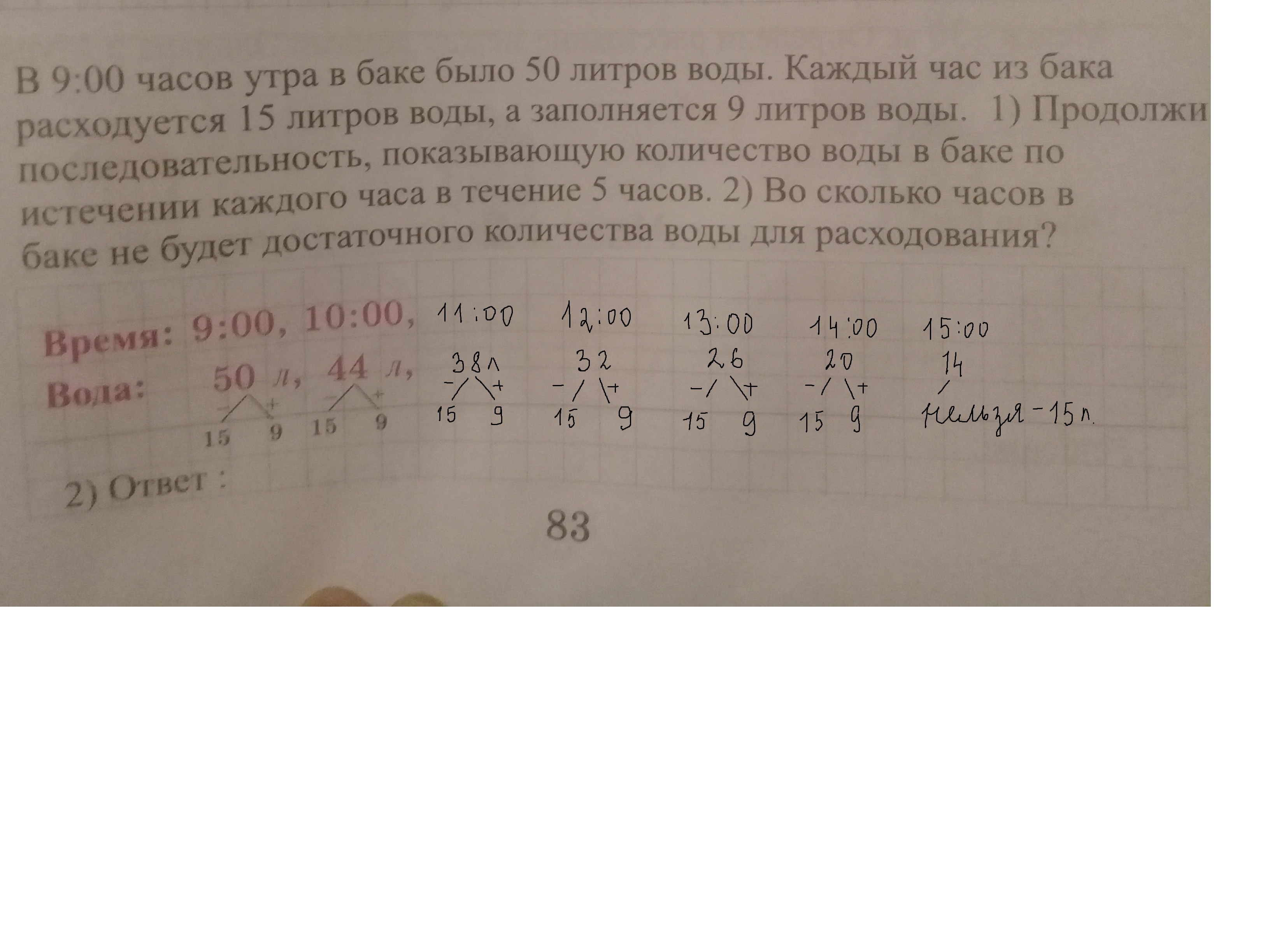 в 15:00 не будет достаточно воды для расходования