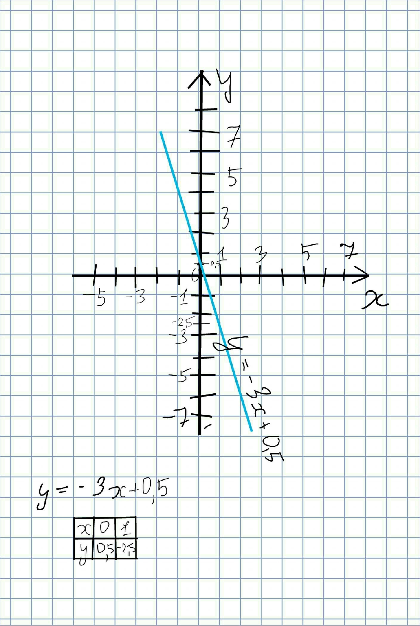 построить график функции у= -3х+0,5. Задать формулой функцию, график которой параллелен графику данной функции и пересекает ось ординат в точке с ординатой 1,5