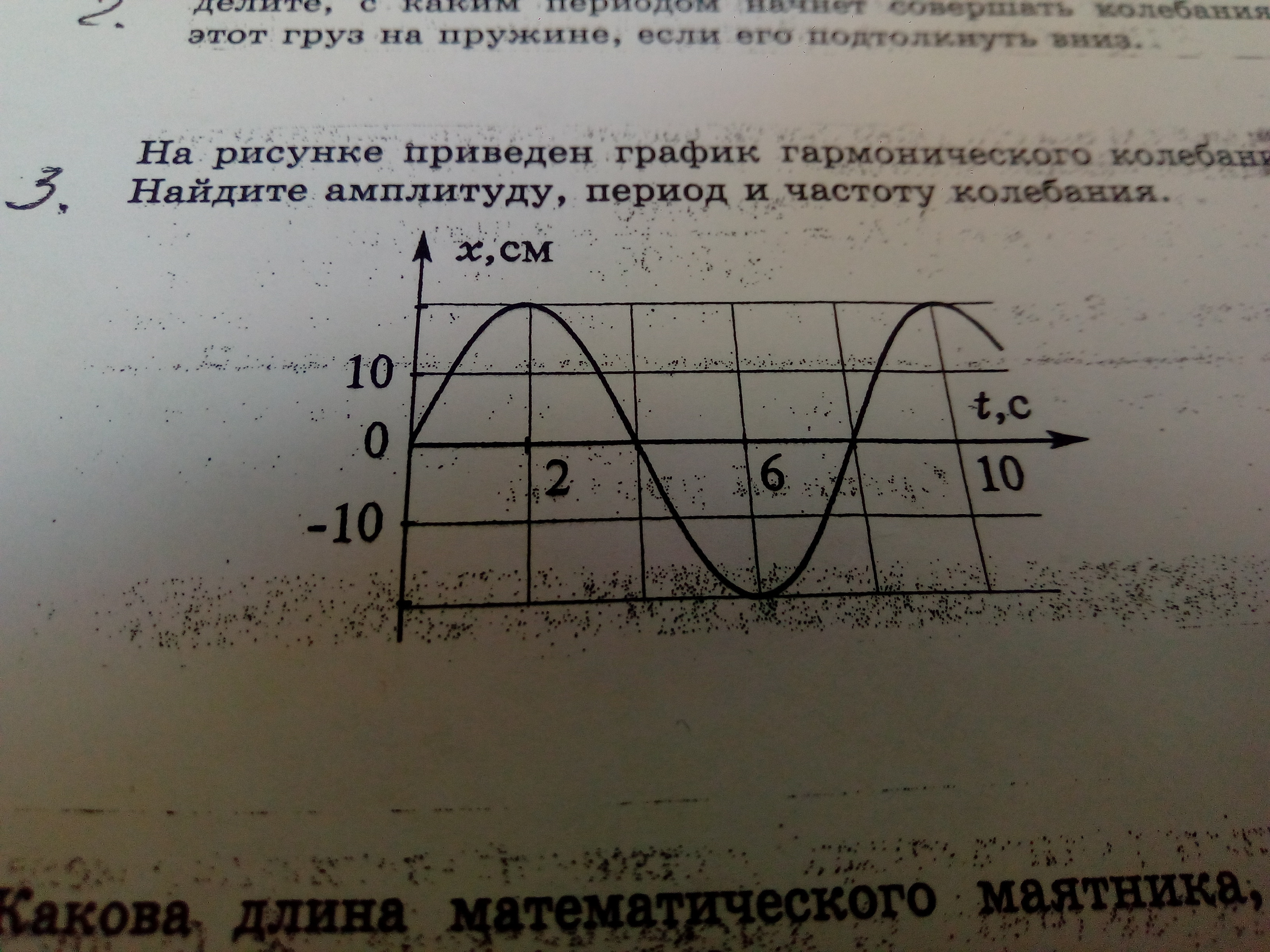 На рисунке приведён график гармонического колебания. Найдите амплитуду период и частоту колебания