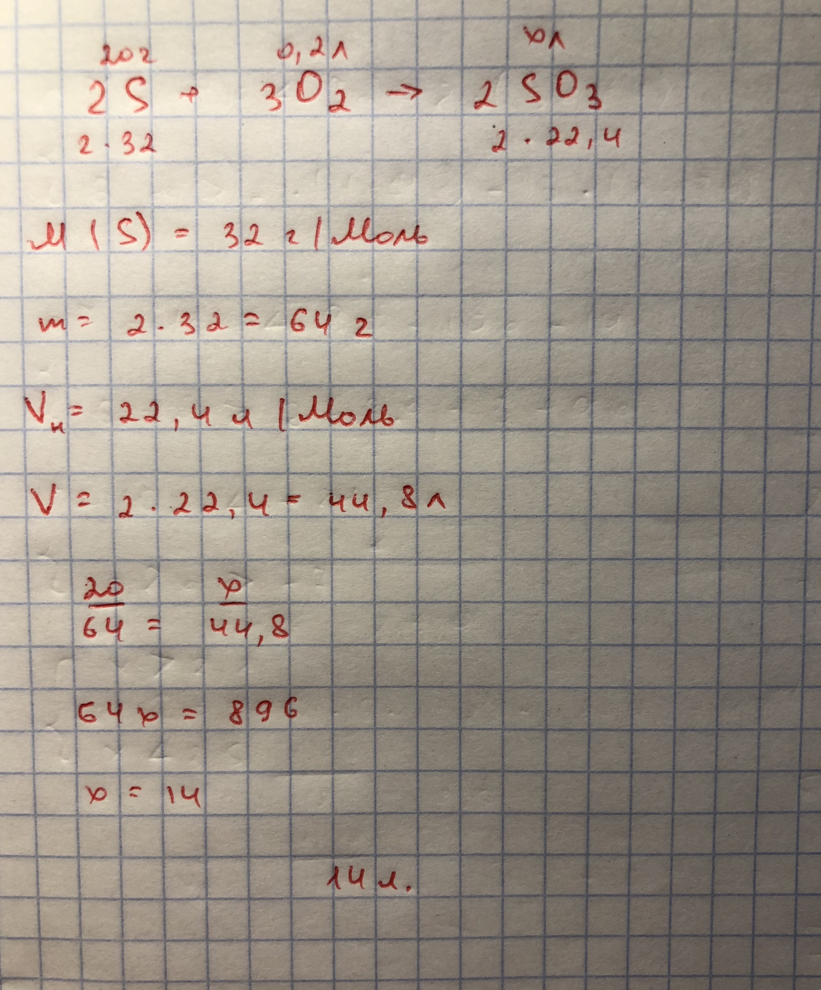 Задача: Вычислить объем сернистого газа, который образуется при взаимодействии 20г серы с 0,2л кислорода.