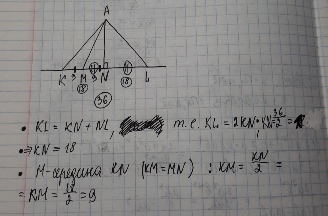 Известно, что N — серединная точка отрезка KL, а M — серединная точка отрезка KN.