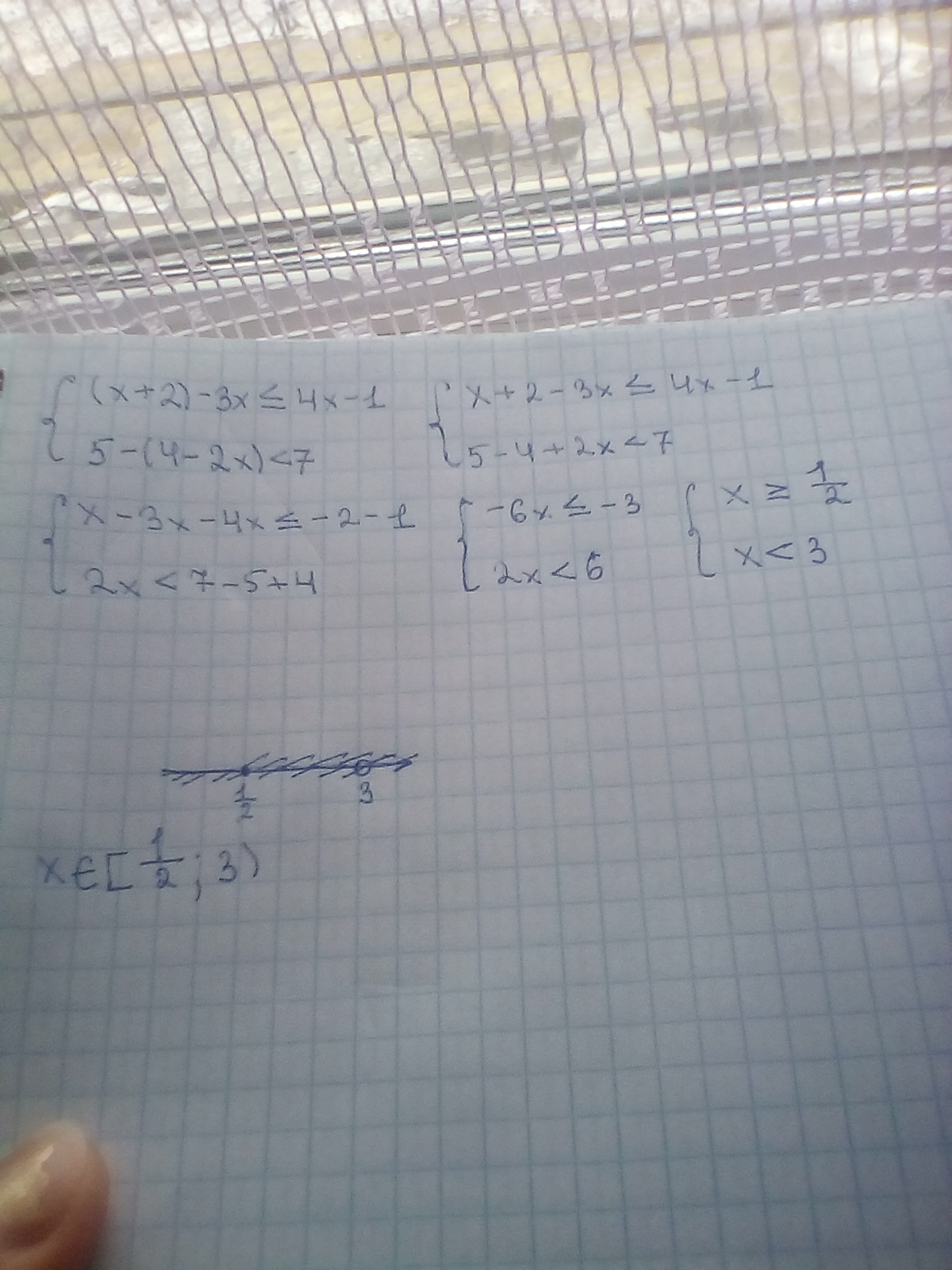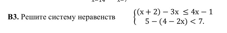 {x+2-3x≤4x-1, 5-4+2x<7;