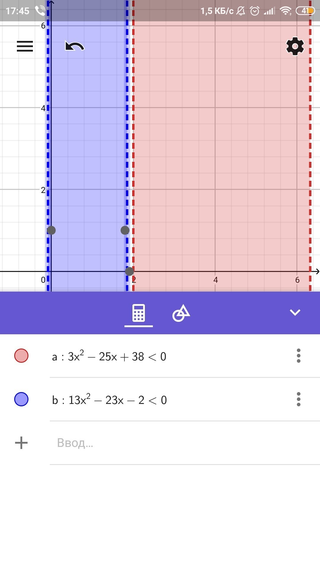 В Простоквашино открылся Математический рынок. Продавцы отдают свой товар за правильно решенные задания. Матроскин, гуляя по этому рынку, увидел около одного из прилавков корову и теленка. Чтобы получить корову, нужно было найти такое число х, при подстановке которого в выражение 3х2-25х+38 получилось бы отрицательное число. Чтобы получить теленка, нужно было также найти такое число х, при подстановке которого в выражение 13х2-23х-2 получилось бы тоже отрицательное число. Сможет ли Матроскин найти такое число х, при котором получит и корову и теленка одновременно?