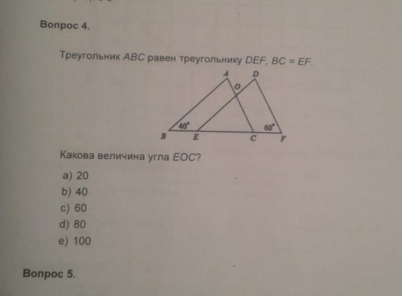 Ответ угол ЕОС=80°