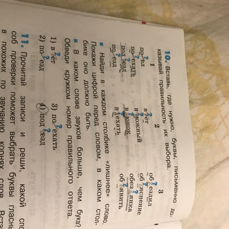 В третьем--слово обезьянка. Так как пишется мягкий знак.