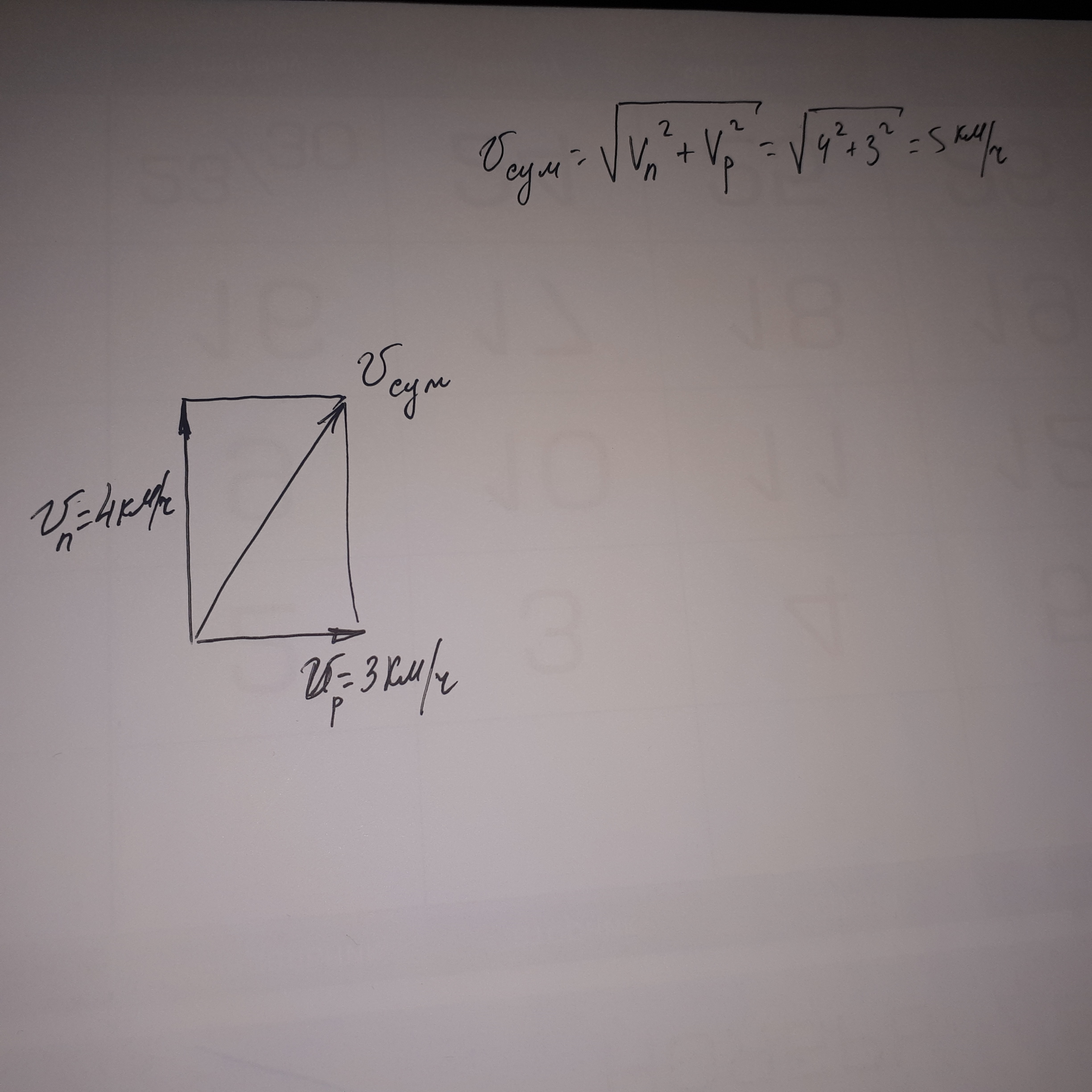 пловец переплывает реку в направлении перепендикулярном ее скорости. найдите модуль скорости плавца относительно берега если модуль скорости реки u=3 км/ч а модуль скорости плавца относительно воды u= 4 км/ч . даю 45 баллов. помогите пожалуйста.