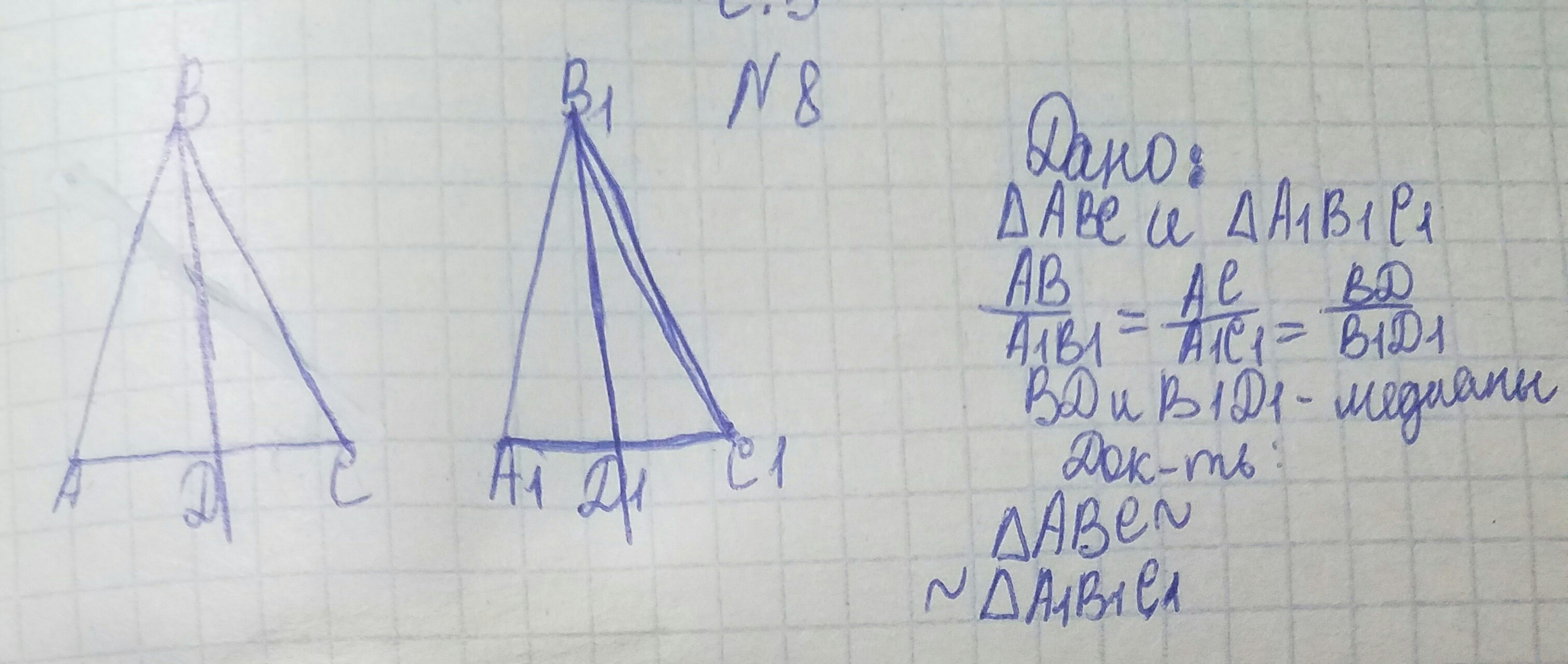=> треугольник ABC(2) ~ треугольнику A(1)B(1)C(1) по первому прищепку подобия