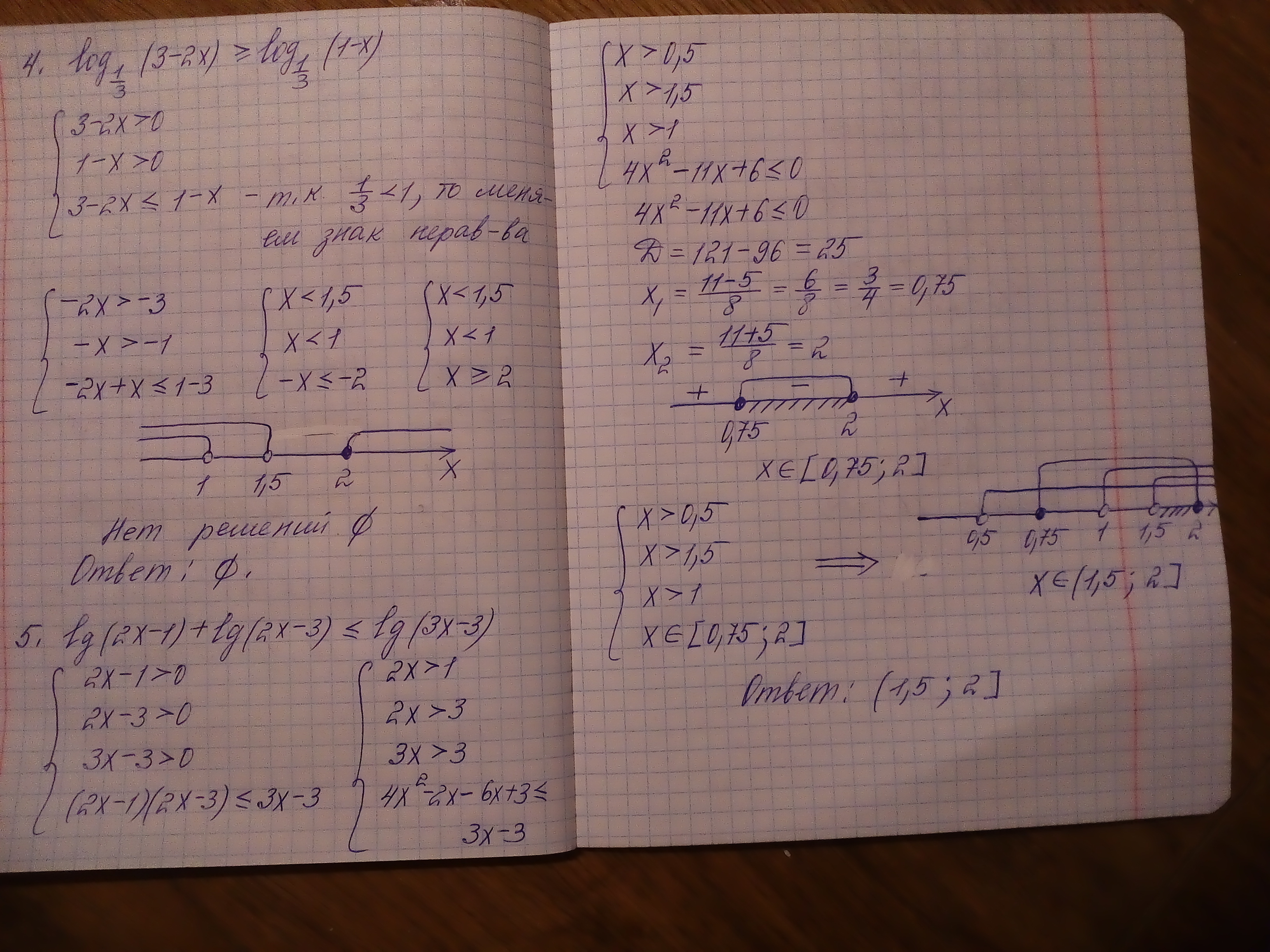 рисуешь интервалы, ответ [0,75; 2]