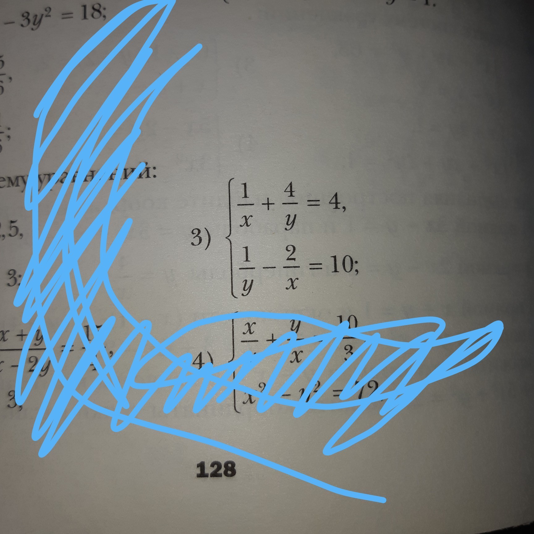 5/у-1/х=14. Можно потом продолжить решать уравнение с двумя переменными, если это требуется