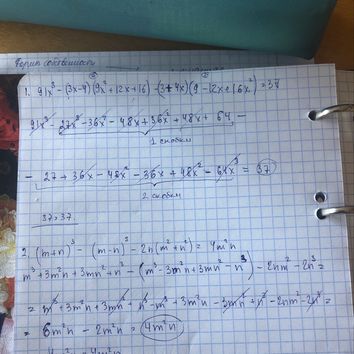 Докажите тождество 1) 91х^3-(3х-4)(9х^2+12х+16)-(3+4х)(9-12х+16х^2)=37