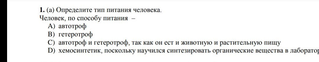 В) Гетеротроф, так как это писание готовыми органическими веществами, которым питаются все животные.
