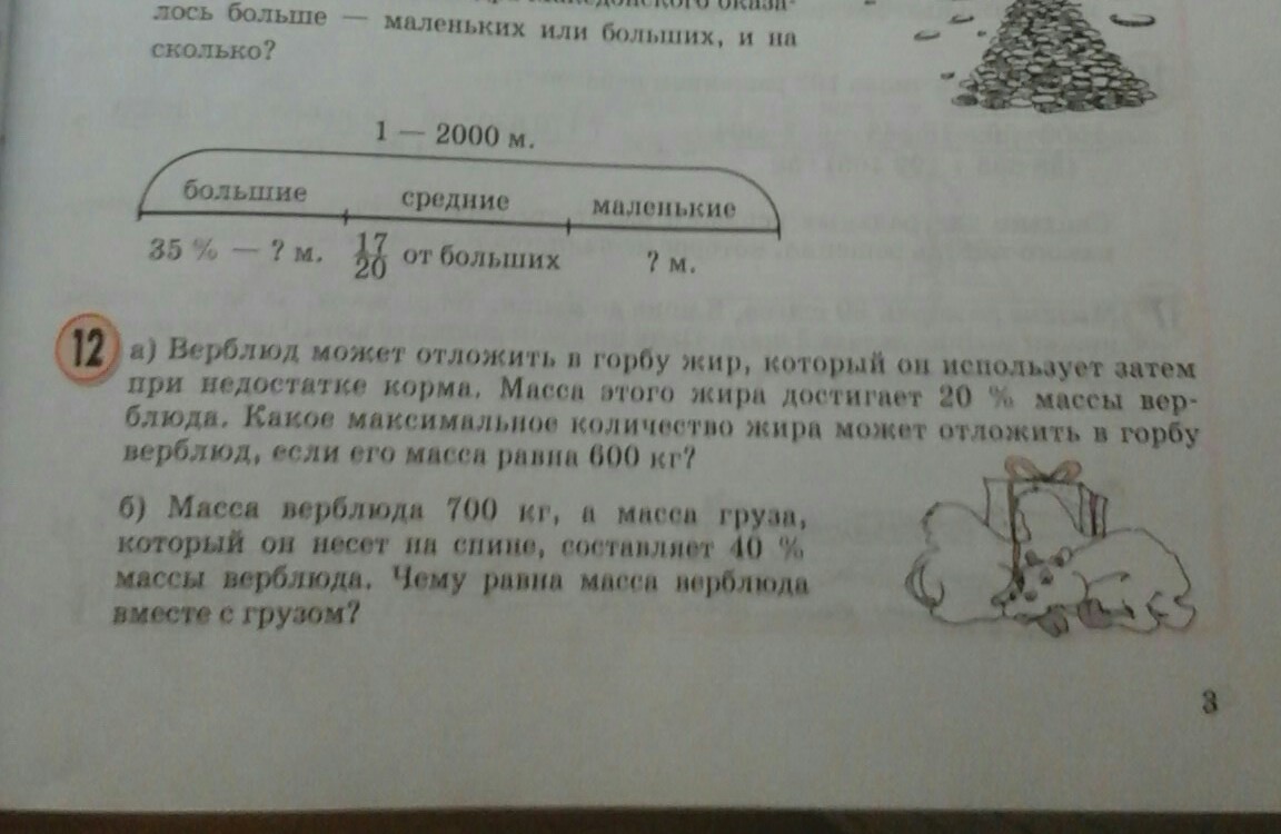 3) 700 + 280 = 980 (кг) - масса верблюда вместе с грузом