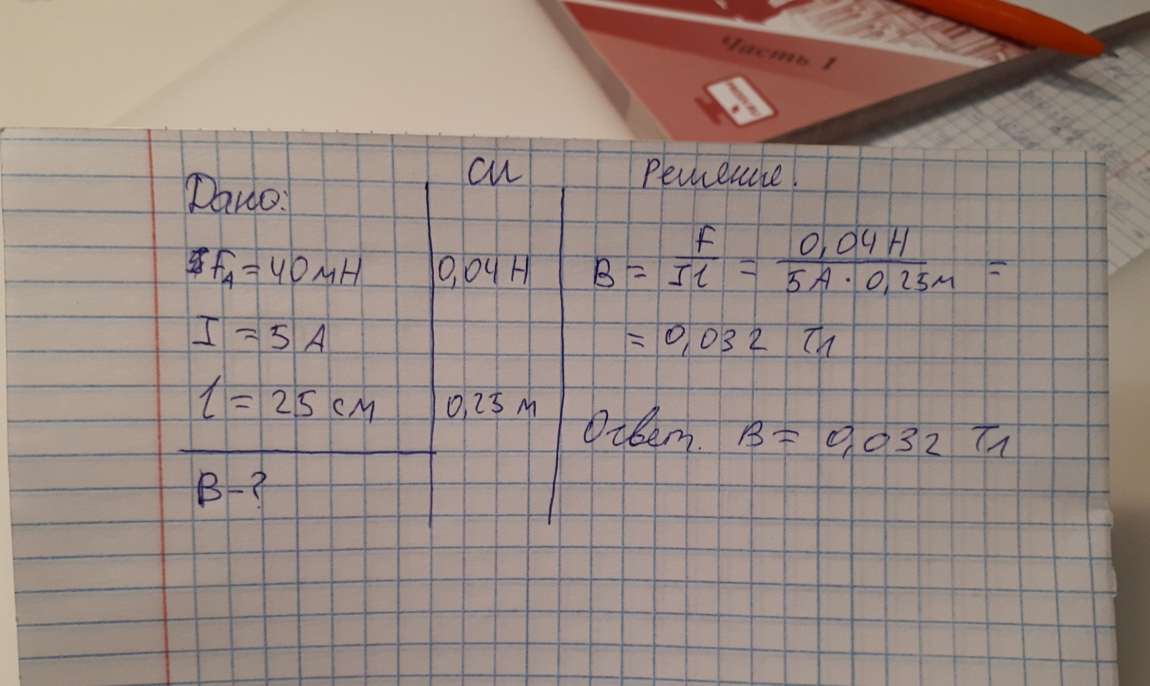 Сила Ампера, действующая на проводник в магнитном поле, равна 40 мН. Какова индукция этого магнитного поля. если сила тока в проводнике 5 А, а его длина (находящаяся в магнитном поле) 25 см?