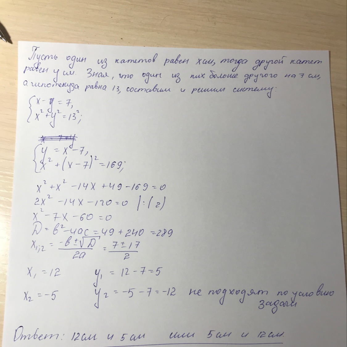 Решите пожалуйста. С ПОМОЩЬЮ СИСТЕМЫ!!!. НЕ с помощью теоремы Пифагора. Буду очень благодарен. (Если можете, то решите на листочке)