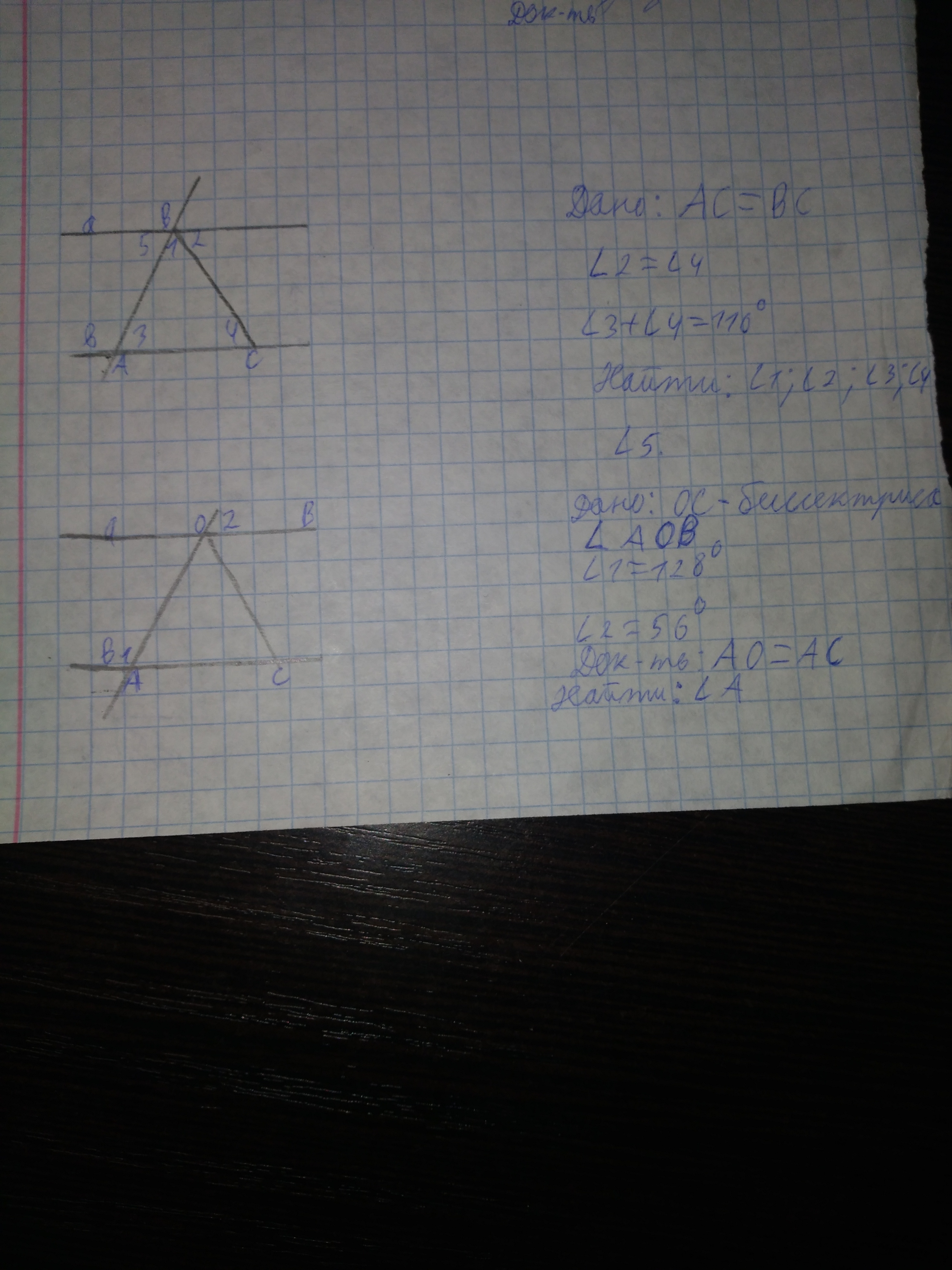 Угол 3 = углу 1 ТК треугольник равнобедренный. Угол 4 равен 40° угол 2 равен углу 4 по дано.