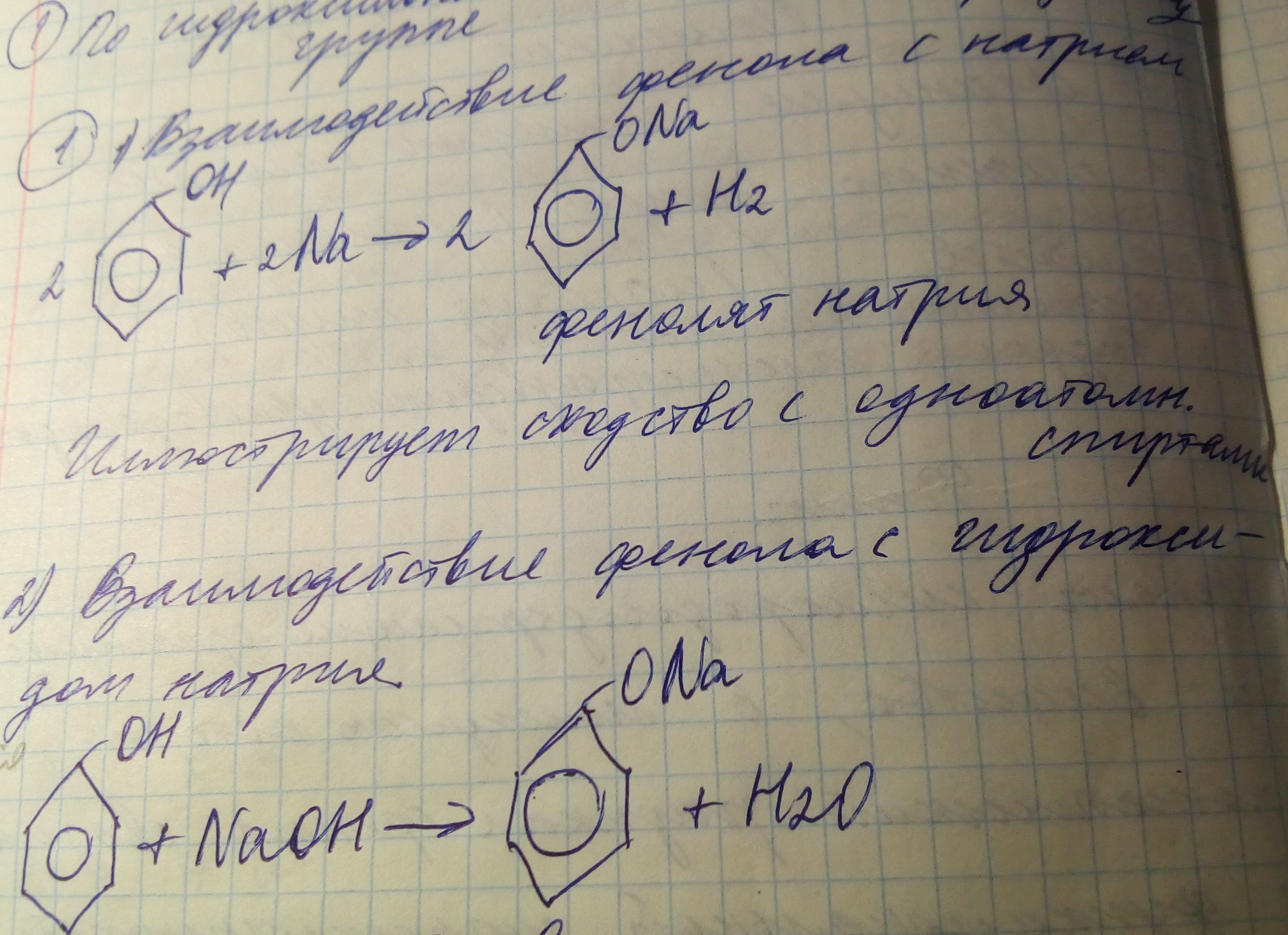 1)свойства фенола с щелочами металлическим натрием бромной водой формальдегидом