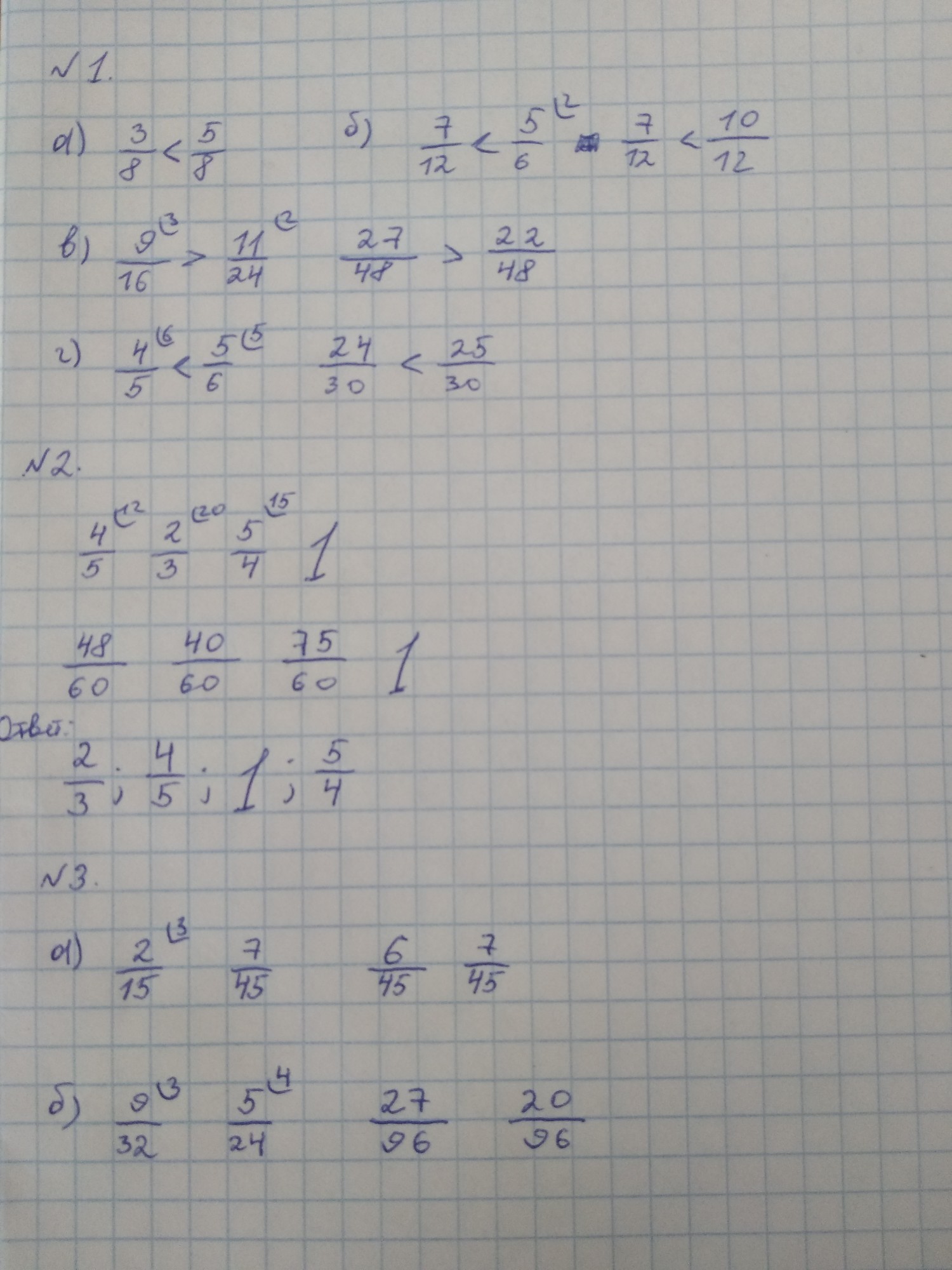 А)3/8 и 5/8 Б)7/12 и 5/6 В)9/16 и 11/24 Г) 4/5 и 5/6 (с общим знаменателем где вожможно)