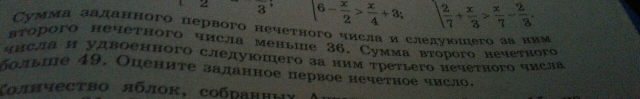 каждый раз нечетное число увеличивается на два (x+2)- число (х+4) и составь систему