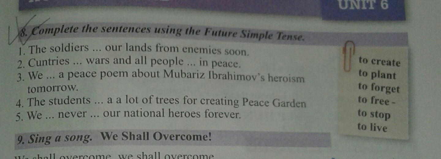 1. Will free( Солдаты будут освобождать нашу страну от врагов скоро)