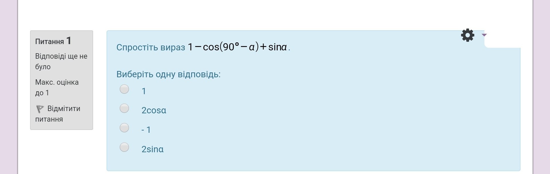 Косинус 90 градусов - альфа равно синусу, поэтому просто 1