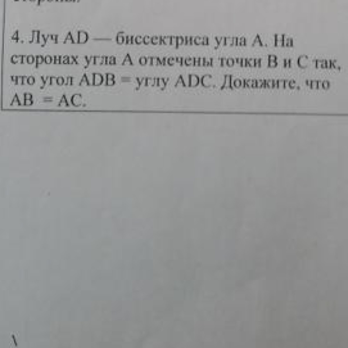 △ADB=△ADC (по стороне и прилежащим к ней углам)