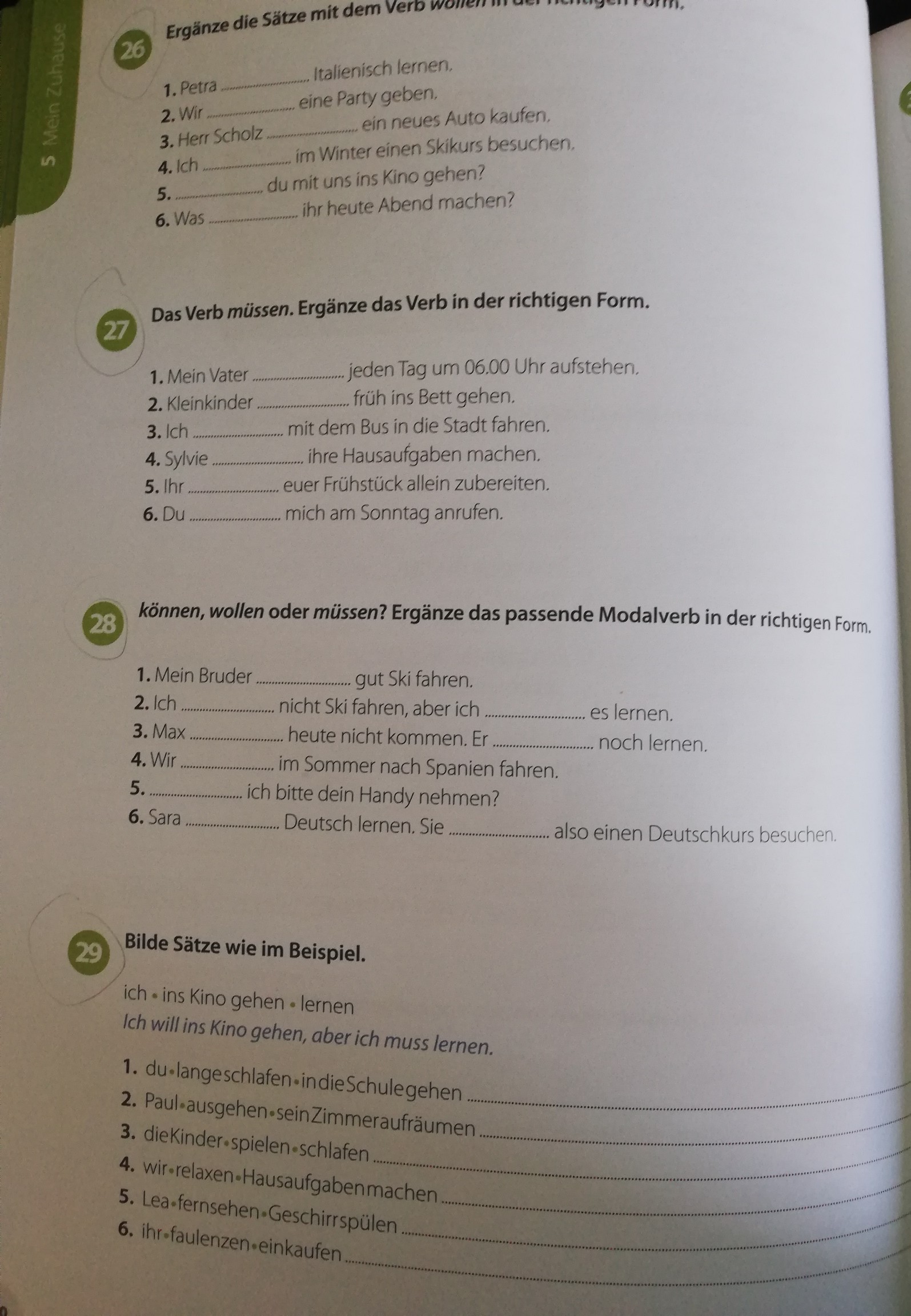 2. Paul will ausgehen, aber er muss sein Zimmer aufräumen.