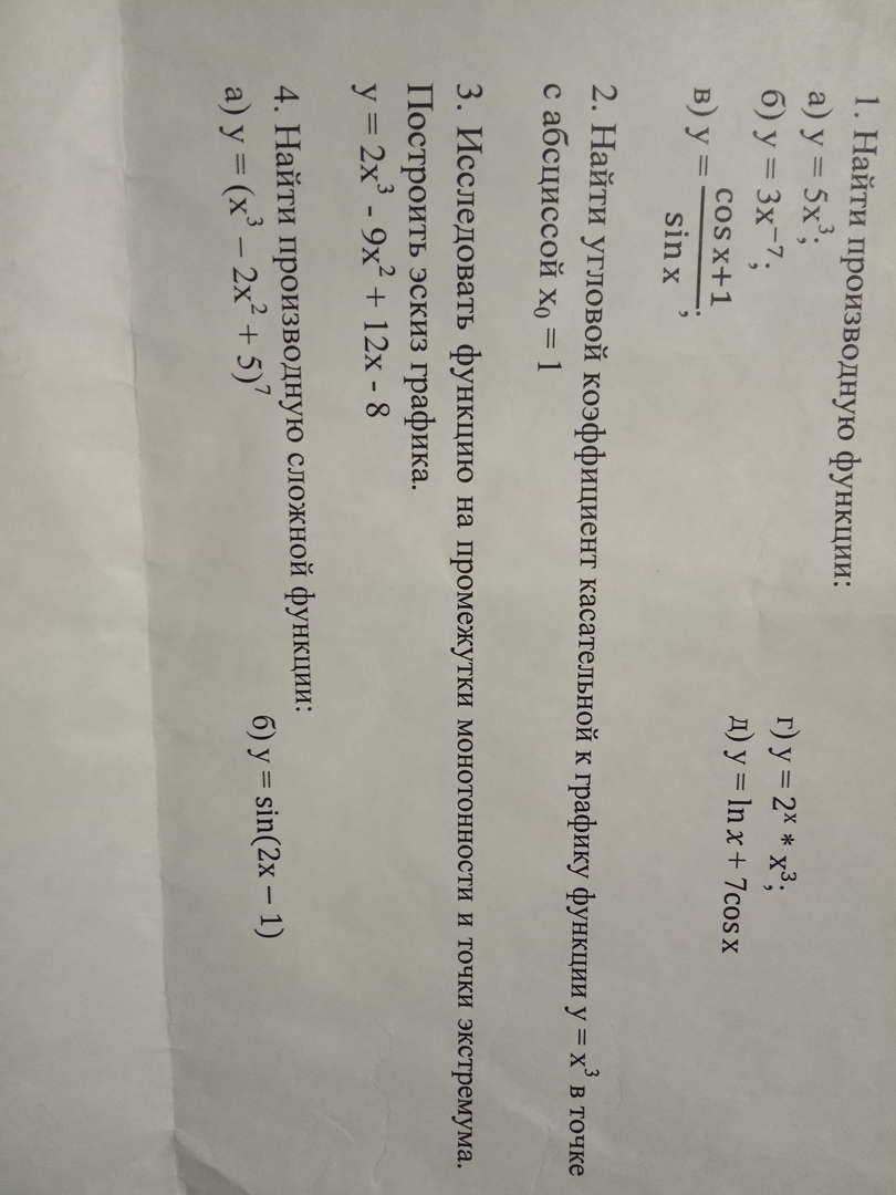 Странно, конец колледжа, а тема только по производным. Я думал, что у вас хотя бы линейная алгебра будет.