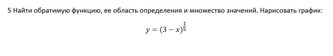 Найдите обратную функцию, её область определения и множество значений. Нарисуйте график.