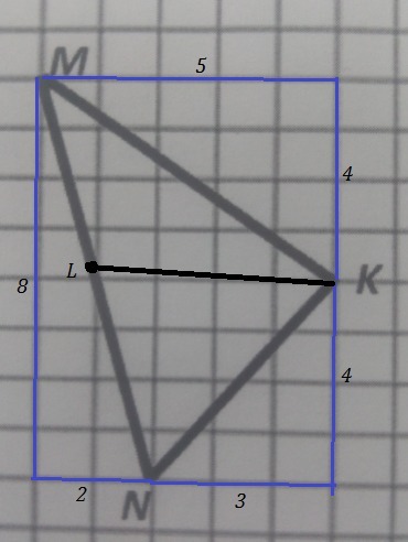 NK=√(3²+4²)=5 , NM=√(2²+8²)=√68 , MK=√(5²+4²)=√41 .