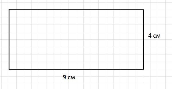 Чертим прямоугольник со сторонами 4 и 9 см. (смотри рисунок).