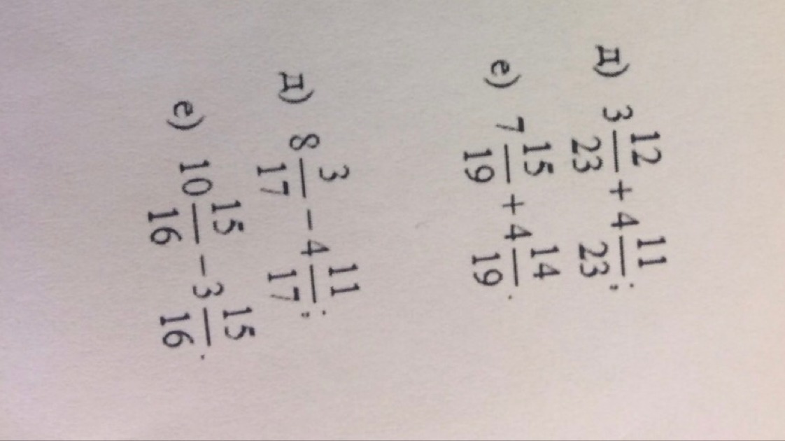 первый столбик д) 7целых23/23 и сократить просто 7 целых 1/1