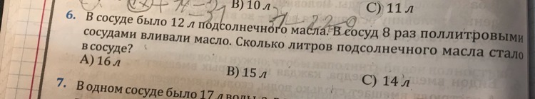 Мы знаем, что изначально уже было 12 литров масла в сосуде.
