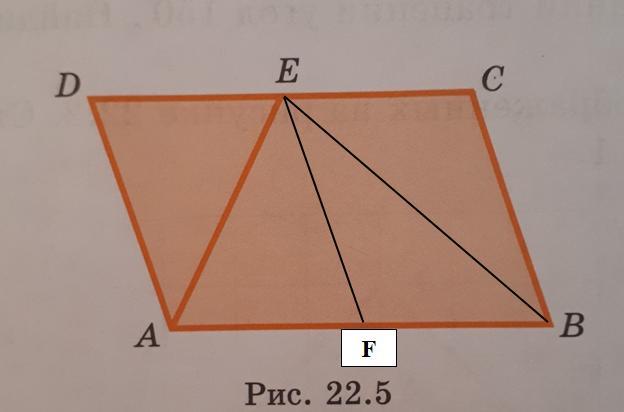 Отметим середину стороны АВ через F (см.). Тогда отрезок EF делит параллелограмм ABCD на два равные параллелограммы AFED и FECB. В параллелограмме AFED отрезок AE будет диагональю. В параллелограмме FECB также проведём диагональ EB. По свойству параллелограмма диагонали делят площадь параллелограмма на 2 равные треугольники. В итоге получаем 4 равные треугольники. Если площадь треугольника ADE равна 6 кв. единиц, то площадь трапеции ABCE равна 3·6=18 кв.единиц.