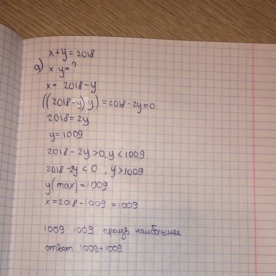 а)Запишите число 2018 в виде суммы двух чисел произведение которых наибольшее.