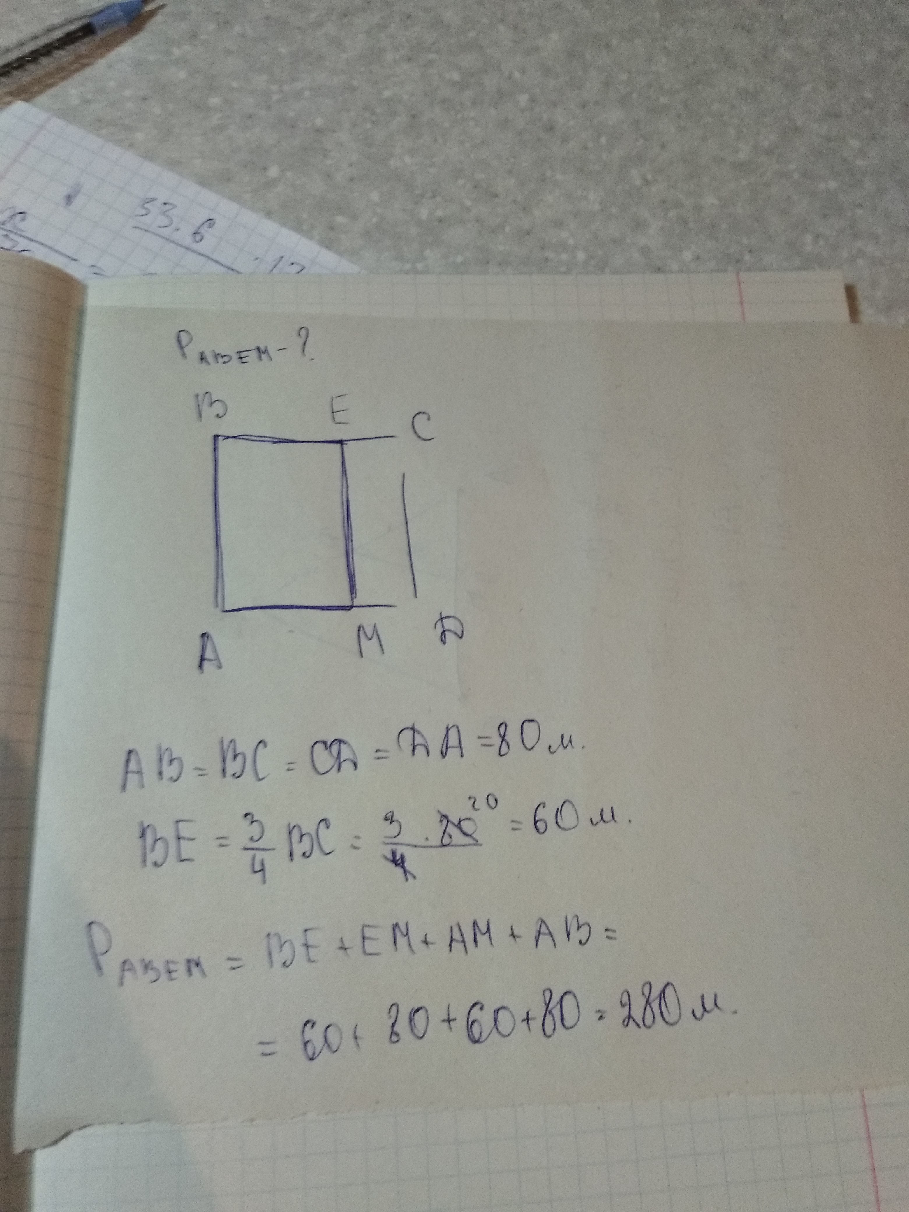 на 3/4 части участка квадратной формы со стороной 80 м посадили картофель.засаженную часть огородили забором.найди длину забора