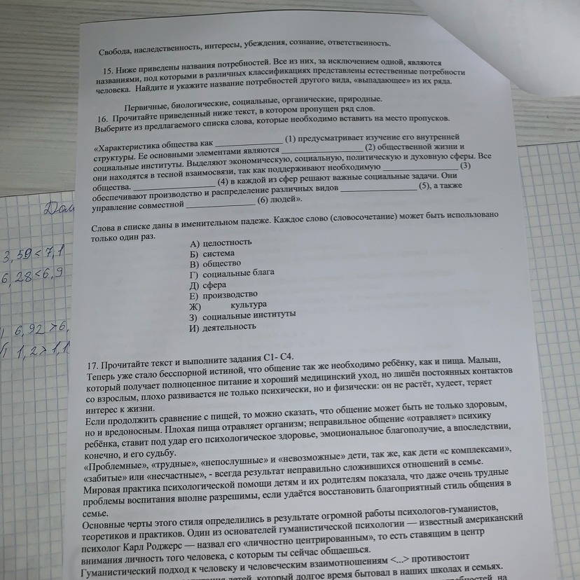 16. 1-системы,2-сферы,3-деятельность,4-соц институты,5-соц блага,6-культурой